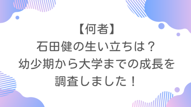 【何者】石田健の生い立ちは?幼少期から大学までの成長を調査しました!