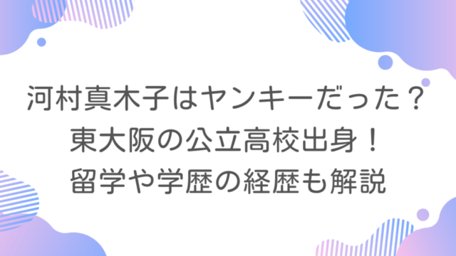 河村真木子はヤンキーだった?東大阪の公立高校出身!留学や学歴の経歴も解説