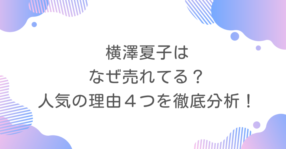 今回は、横澤夏子さんが多くの人に愛される理由を深掘りします。